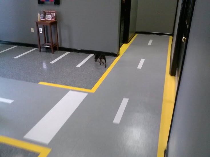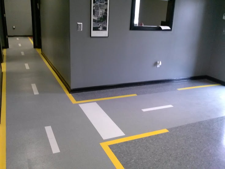 Myles Trucking wanted a new look for their lobby, hallways , and general office area. They asked us to design a custom VCT design that resembles a roadway. Trucking is there business they wanted to reflect it to everyone visiting the office.