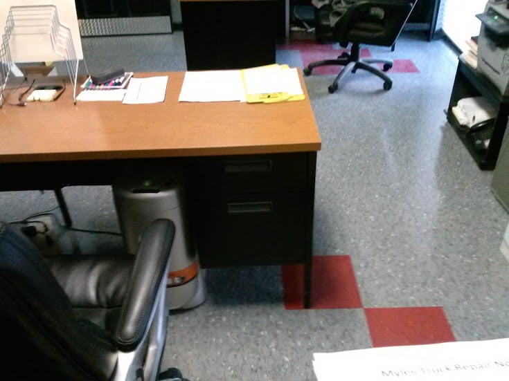 Myles Trucking in Lawrenceville GA selected Vinyl composition tile (VCT) material. Its great for high traffic commercial areas but can be utilized in homes as well. VCT Vinyl tiles are composed of colored vinyl chips formed into solid sheets of varying thicknesses (1/8” is most common) by heat and pressure and cut into 12” squares. Tiles are applied to a smooth, leveled sub-floor using a specially formulated vinyl adhesive that remains tacky but does not completely dry. Tiles are typically waxed and buffed using special materials and equipment.